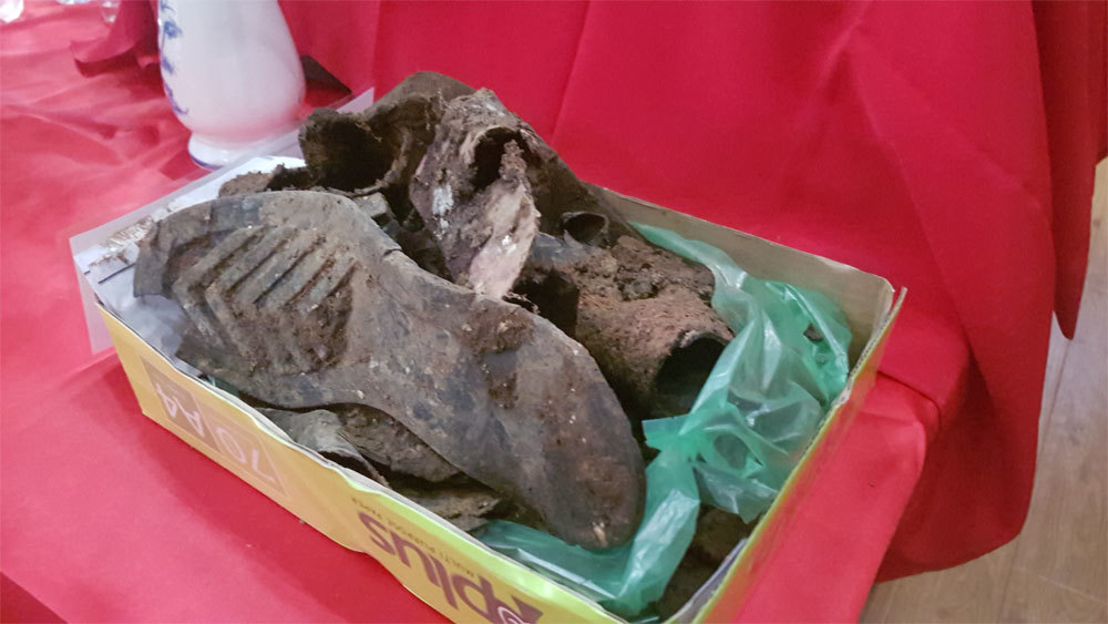 Những di vật đi kèm với hài cốt của 2 liệt sỹ tử nạn cũng được đưa về, gồm dây lưng, bao tay, bao súng ngắn, đế giày, một số mảnh quần áo… vẫn còn nguyên trạng.