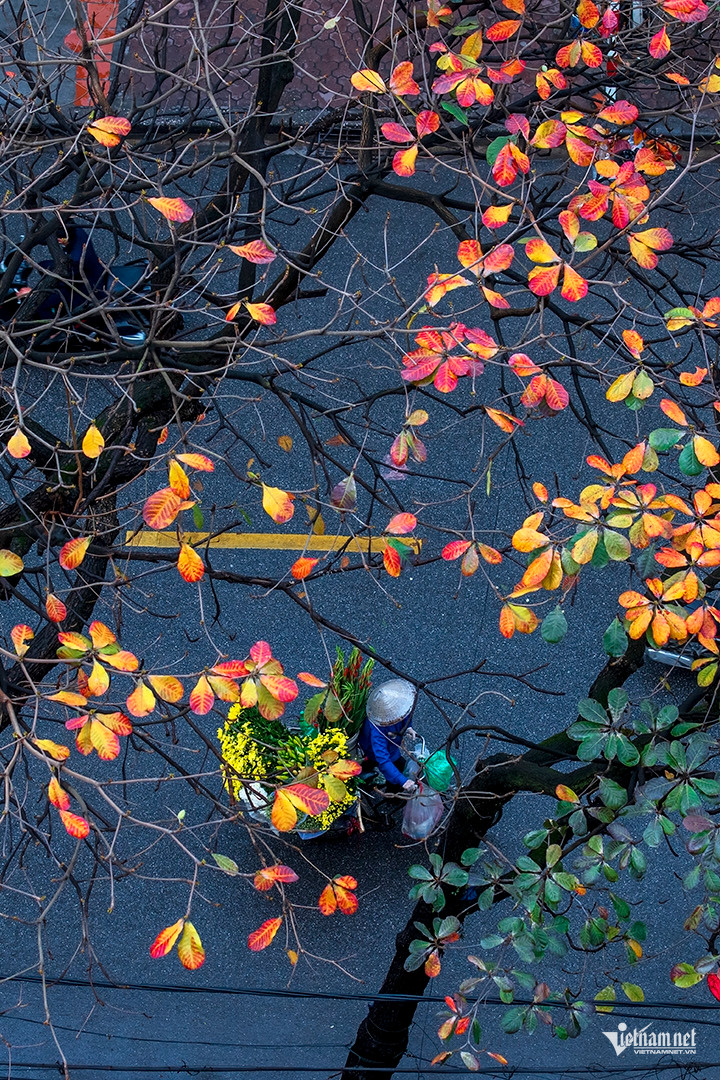 "Hà Nội mùa thu, cây cơm nguội vàng, cây bàng lá đỏ/Nằm kề bên nhau, phố xưa nhà cổ, mái ngói thâm nâu" là hai câu mở đầu mà hầu như ai cũng thuộc trong bài hát "Nhớ mùa thu Hà Nội" của nhạc sĩ Trịnh Công Sơn. Nhờ đó mà cây bàng ở Hà Nội khi lá chuyển màu luôn để lại trong lòng người nhiều cảm xúc hơn cả. Ảnh: Phạm Quốc Dũng