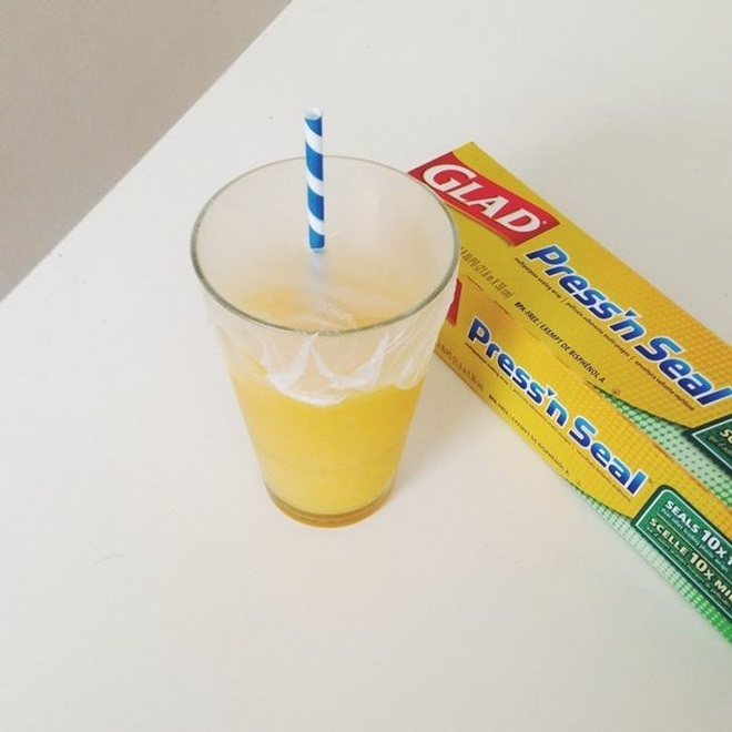| Nếu nhà bạn có con nhỏ, bạn có thể sử dụng màng bọc thực phẩm để bọc miệng cốc, sau đó dùng ống hút xuyên qua để bé uống. Các bé sẽ không thể làm đổ nước ra nhà bằng cách này. |