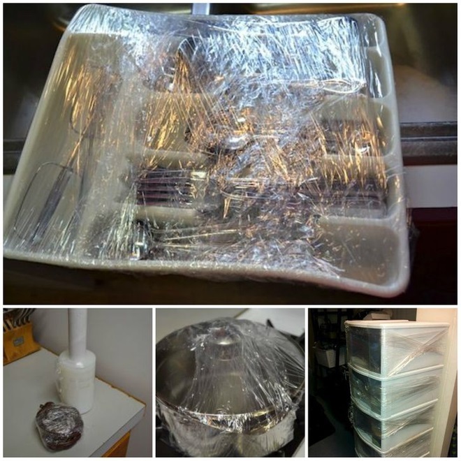 | Sử dụng màng bọc thực phẩm để cố định các món đồ có nhiều thành phần như khay ấm chén, hộp đựng đồ có nắp đựng,... Như vậy, các bộ phận của đồ vật sẽ không bị rơi ra thành từng mảnh và bạn cũng không mất nhiều thời gian tìm kiếm các mảnh ghép còn lại của món đồ. |