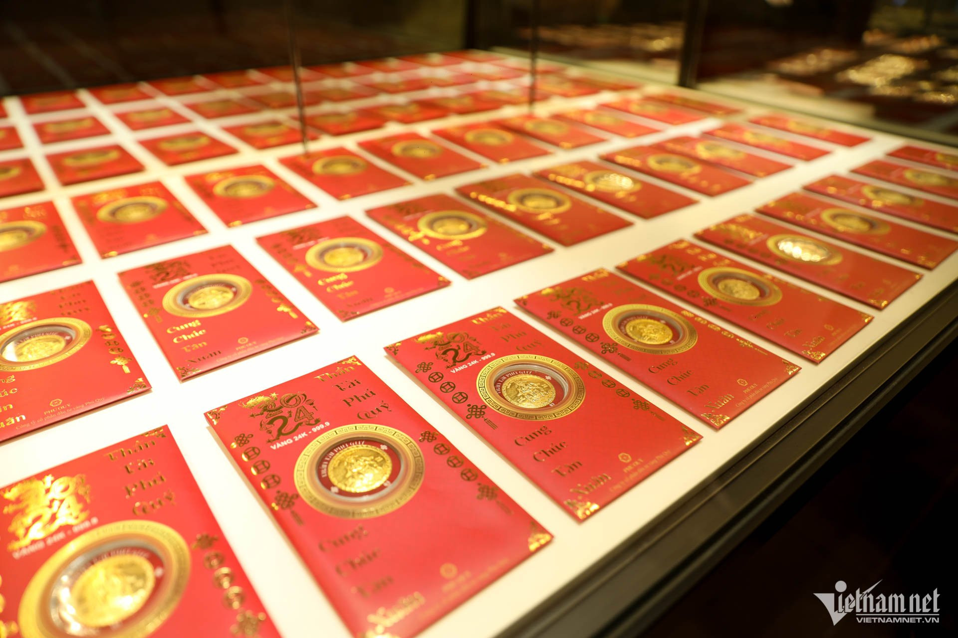 Năm Giáp Thìn tiệm này có thêm những thỏi vàng lớn khắc hình linh vật rồng với trị giá cao.
