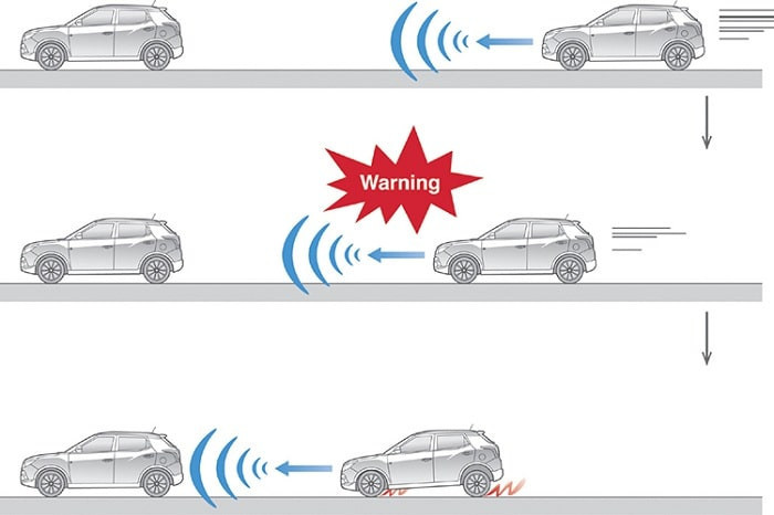 Khi di chuyển trên cao tốc, việc xe phía trước bất ngờ chuyển làn hay giảm tốc độ đột ngột có thể dẫn tới việc xe phía sau không phản ứng kịp thời và xảy ra va chạm đáng tiếc. Đây là lí do mà các hãng xe trang bị hệ thống cảm biến va chạm phía trước cho phương tiện để cảnh báo sự chuyển làn đột ngột của phương tiện đi trước trong cùng làn đường.