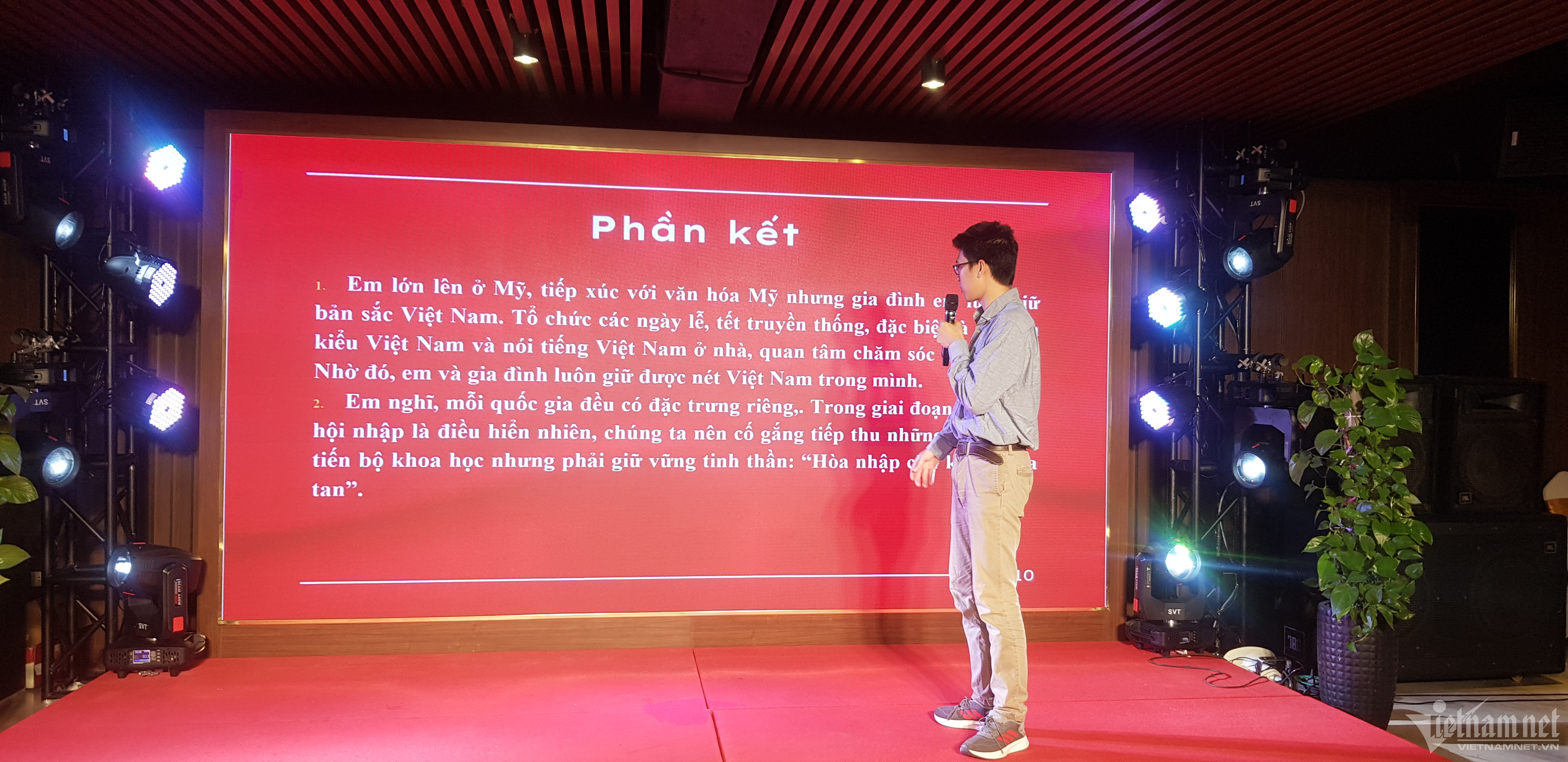 Gặp Nguyên Anh sau khi trao giải, em cho biết mình thuyết trình về vấn đề Thế hệ trẻ kiều bào gìn giữ và phát huy bản sắc văn hóa Việt Nam trong thời kỳ hội nhập. “Em nghĩ rằng thế hệ trẻ kiều bào cần phải có tình yêu với đất nước và tự hào là người Việt Nam. Đặc biệt là yêu tiếng Việt, tăng cường khả năng nói tiếng Việt. Đó là cách để giữ gìn bản sắc Việt”.