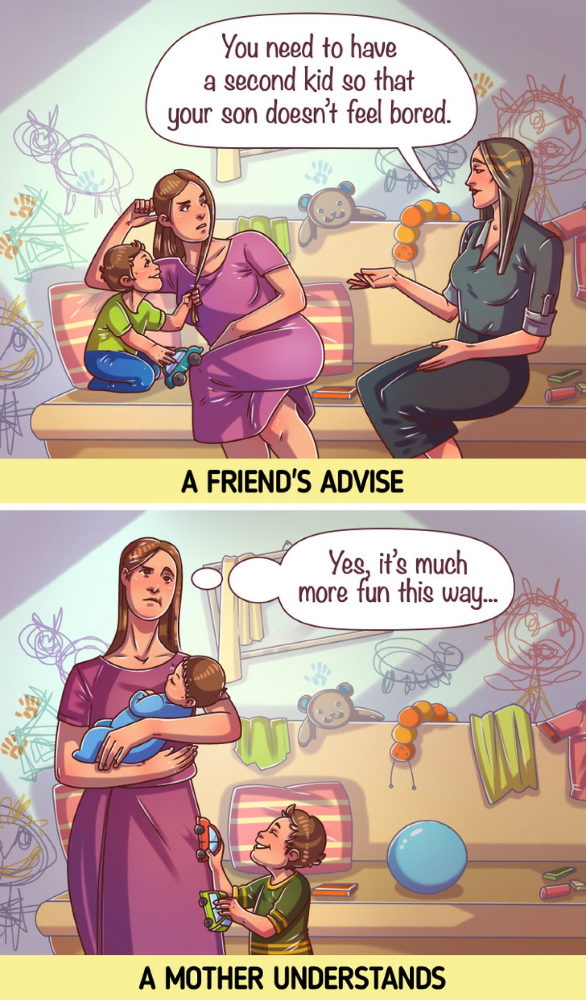 Đối với người ngoài, họ thường biết rõ hơn về những gì cha mẹ trẻ nên làm. Bạn bè và hàng xóm có thể dễ dàng nói những câu như “Đã đến lúc sinh con thứ hai rồi” hoặc cho rằng một người mẹ và người cha nhất thiết phải sinh con trai hoặc con gái, hoặc nghĩ rằng đứa trẻ sẽ thiếu sự quan tâm khi đứa em nhỏ được sinh ra.