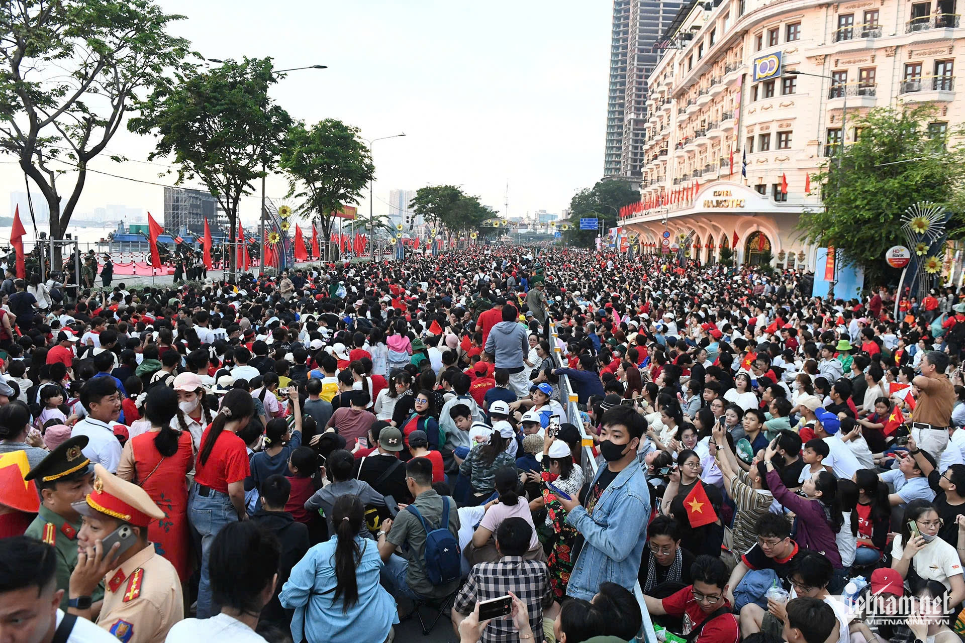 4-5 tiếng trước thời điểm tổng duyệt, hàng nghìn người dân, du khách đổ về trung tâm TPHCM. Người lớn, trẻ em đứng, ngồi tràn đặc kín vỉa hè các tuyến đường Nam Kỳ Khởi Nghĩa, Lê Lợi, Cách Mạng Tháng 8, Lê Thánh Tôn - Nguyễn Huệ, Nguyễn Đình Chiểu - Đinh Tiên Hoàng, Hai Bà Trưng… Nhiều lực lượng được huy động phân luồng, điều tiết người, xe tại khu vực.