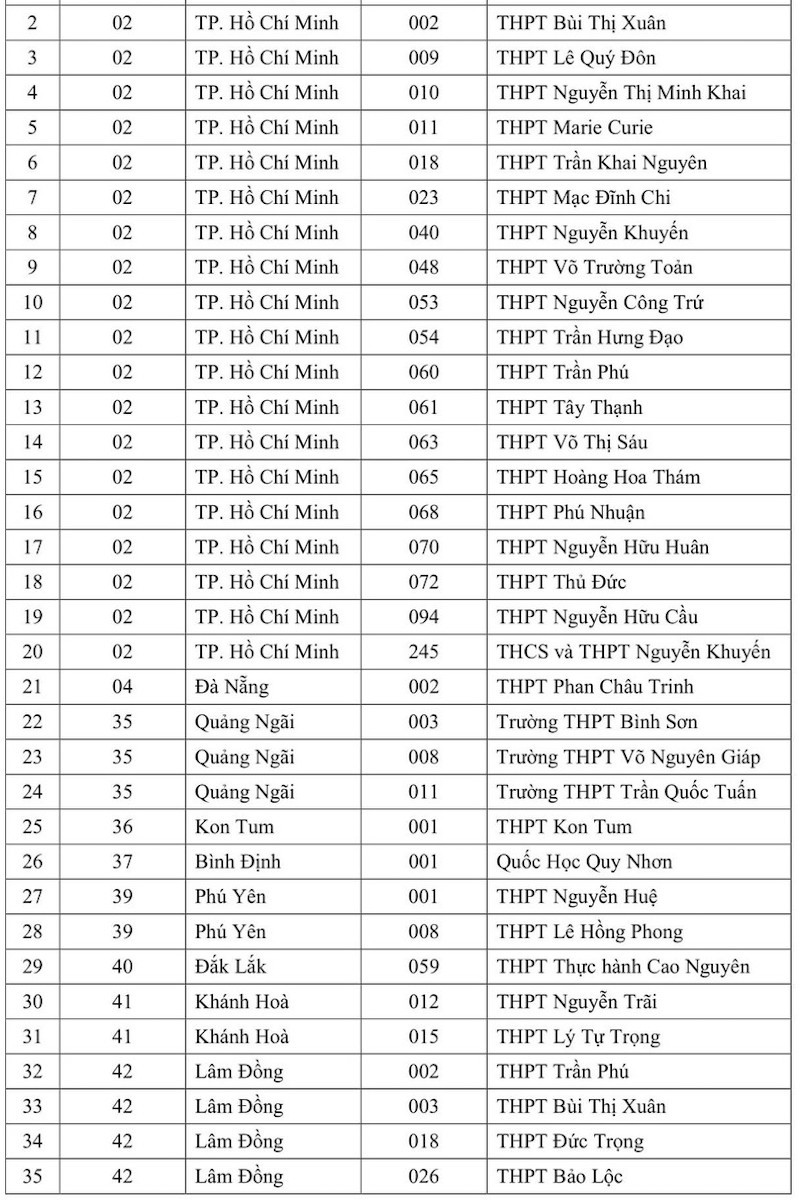 Sau đây là danh sách 83 trường chuyên và 66 trường THPT khác được Đại học Quốc gia TPHCM ưu tiên xét tuyển:
