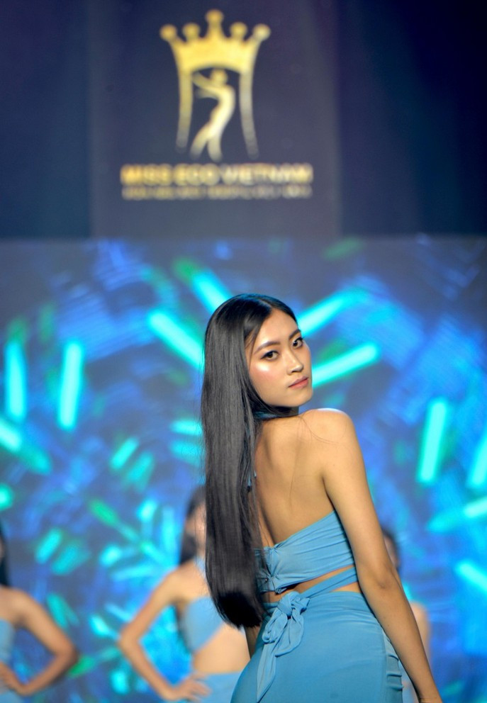 Các thí sinh bước vào phần trình diễn đầu tiên trong vòng thi áo tắm. Xuất hiện với những thiết kế áo tắm màu xanh mang thông điệp về môi trường, các thí sinh tự tin phô diễn đường cong nóng bỏng cùng những bước catwalk tự tin. Khách mời biểu diễn là ca sĩ Đông Nhi với ca khúc mới Đôi mi em đang u sầu.