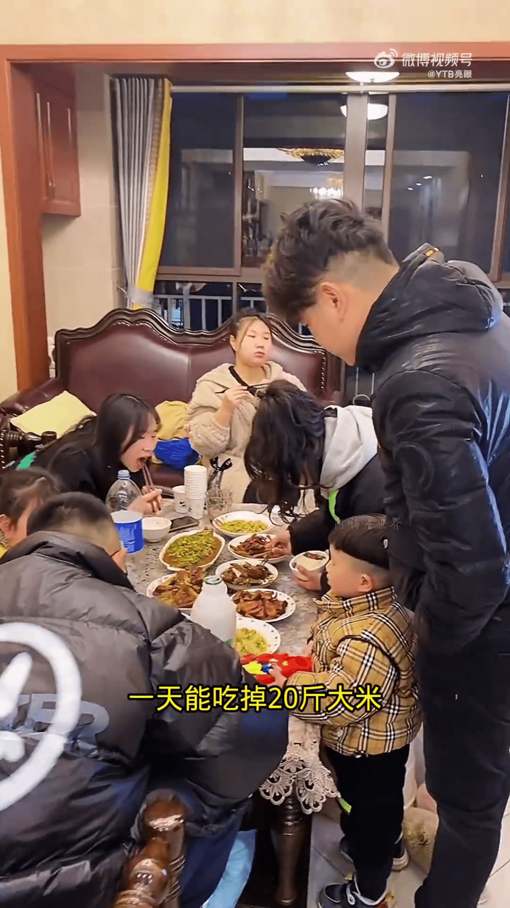 Người cậu trong câu chuyện tên là Cung Linh Quân. Chia sẻ với Yang Cheng Evening News, anh kể rằng mỗi ngày, đại gia đình tiêu thụ trung bình 8kg gạo, 4kg thịt, 20 quả trứng cùng nhiều loại rau quả khác.