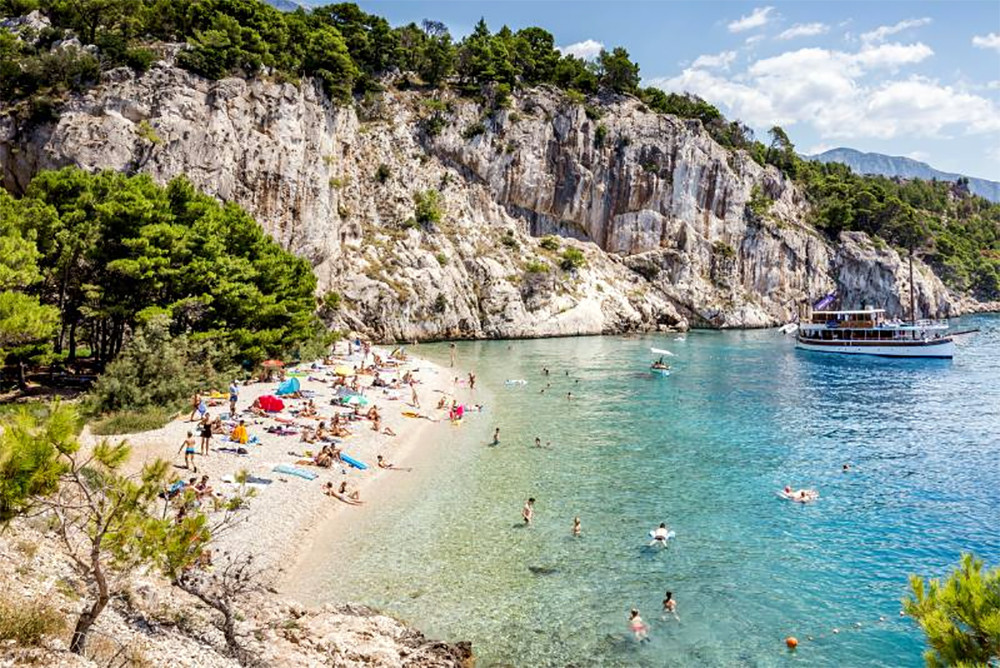 Du khách được khuyến nghị mang theo khăn tắm dày hoặc ghế gấp chuyên dụng vì giống như nhiều bãi biển ở Croatia, bãi tắm này phủ đầy đá cuội thay vì cát.