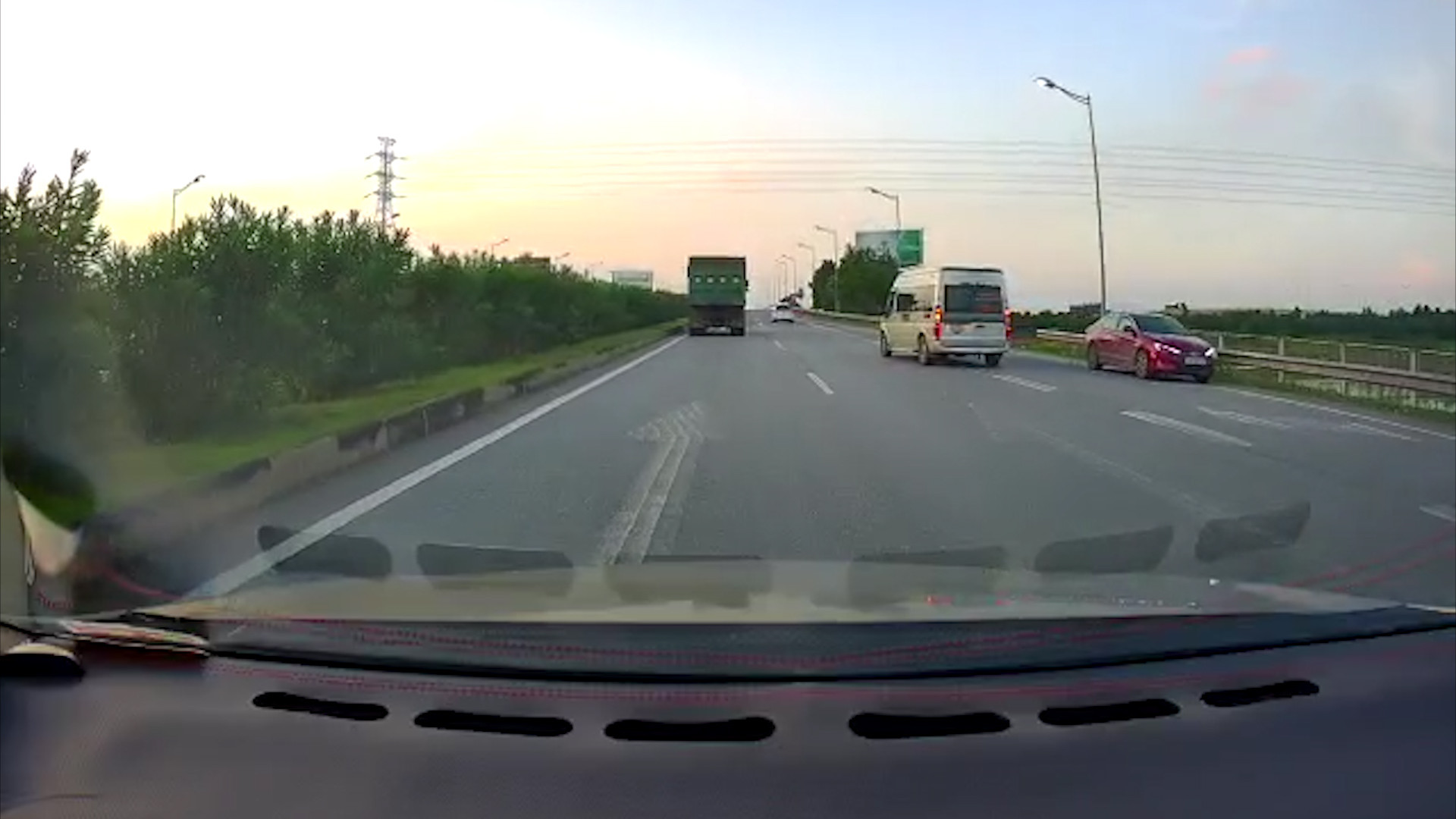Cụ thể, khoảng 18h15, tại đoạn giao QL18 trên cao tốc Hà Nội – Thái Nguyên, xe tải màu xanh loại 3,5 tấn chạy ngược chiều từ làn 100km/h ra làn giữa. Nối sau đó là ô tô con màu đỏ chạy ngược chiều trong làn khẩn cấp.