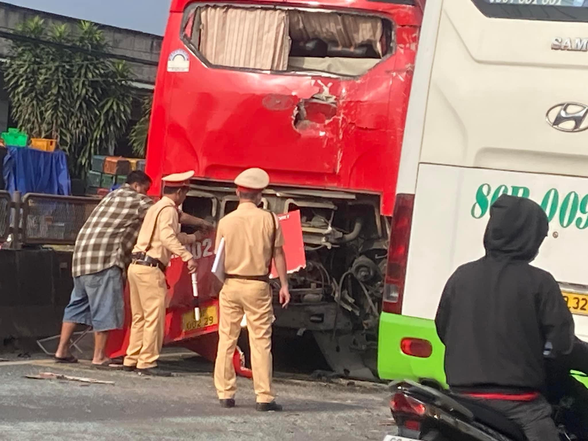 Vụ tai nạn khiến hàng chục hành khách trên 2 xe la hét vì hoảng loạn.