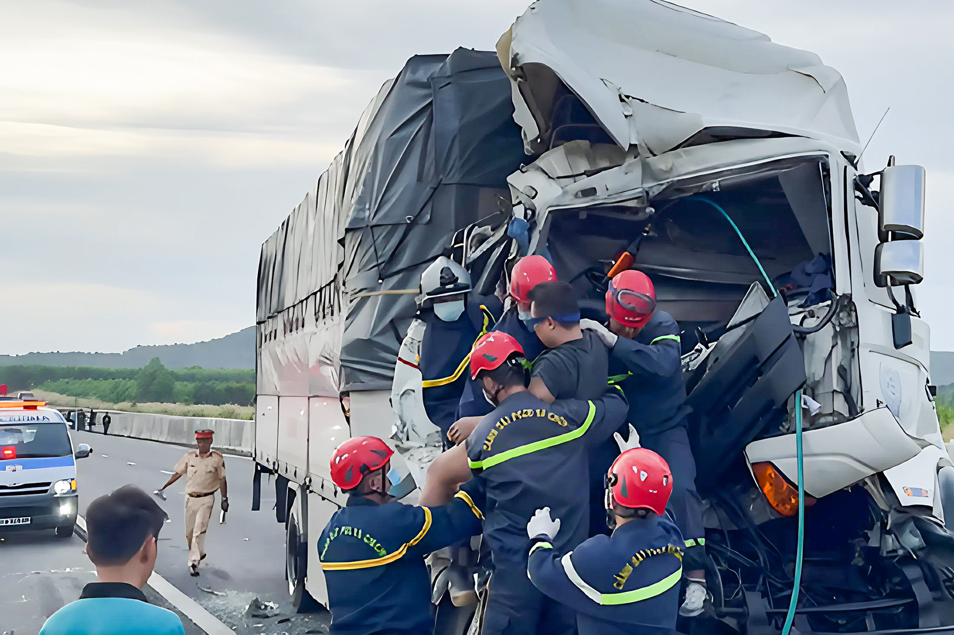 Tông xe tải, ô tô chở 38 khách lao ra khỏi cao tốc Phan Thiết - Dầu Giây