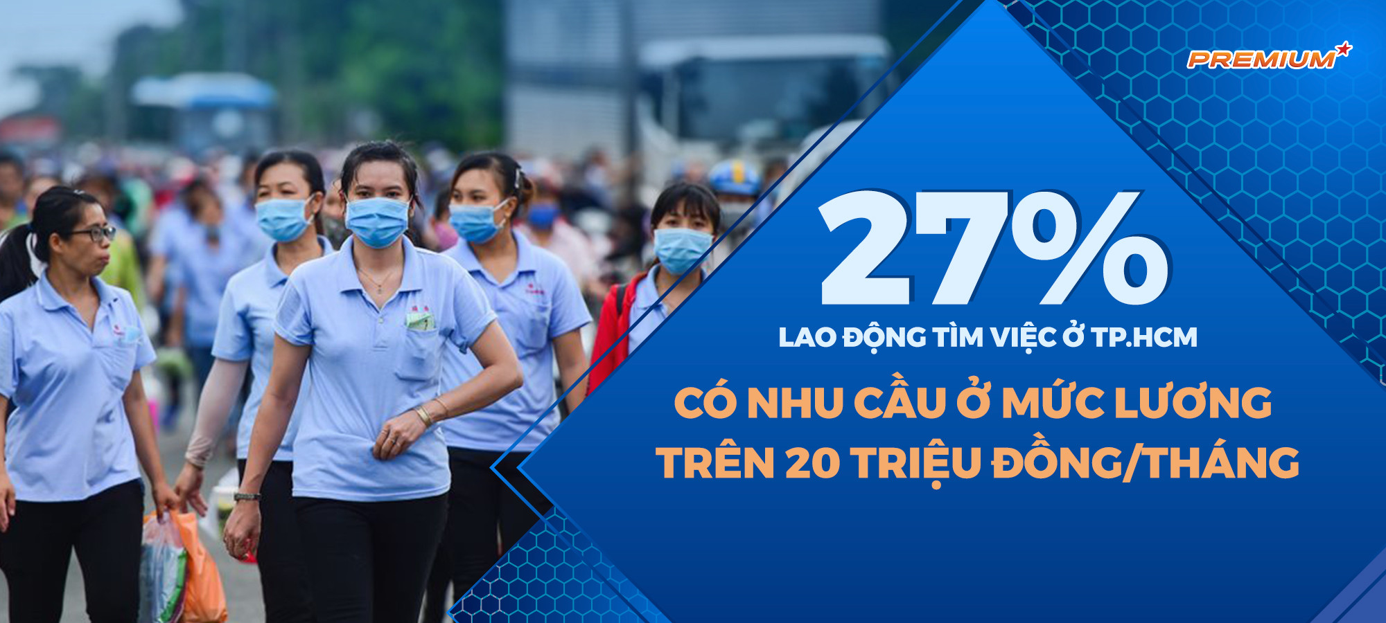 Theo Trung tâm dự báo nhân lực và thông tin thị trường lao động TP.HCM, trong quý I/2022, người lao động có nhu cầu tìm việc ở mức lương từ 5-10 triệu đồng chiếm 30%, trên 20 triệu đồng chiếm gần 27%.