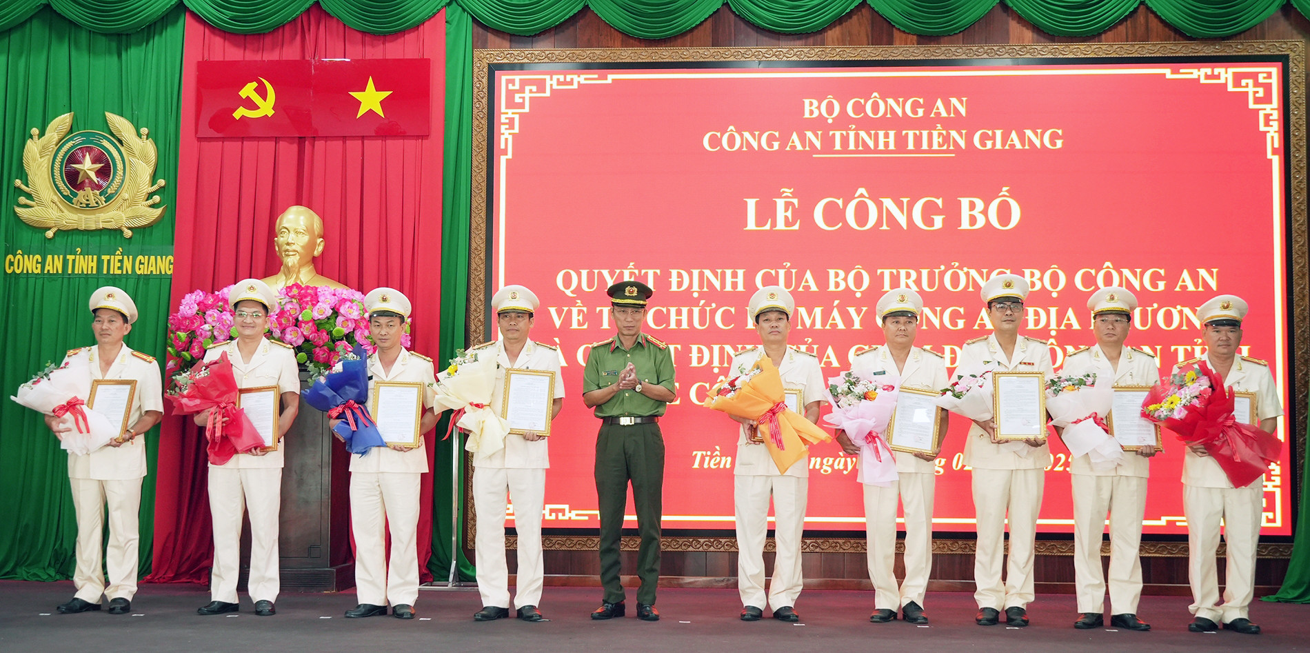 Ngày 28/2, Công an tỉnh Tiền Giang tổ chức lễ công bố quyết định của Bộ trưởng Công an và Giám đốc Công an tỉnh về công tác cán bộ.