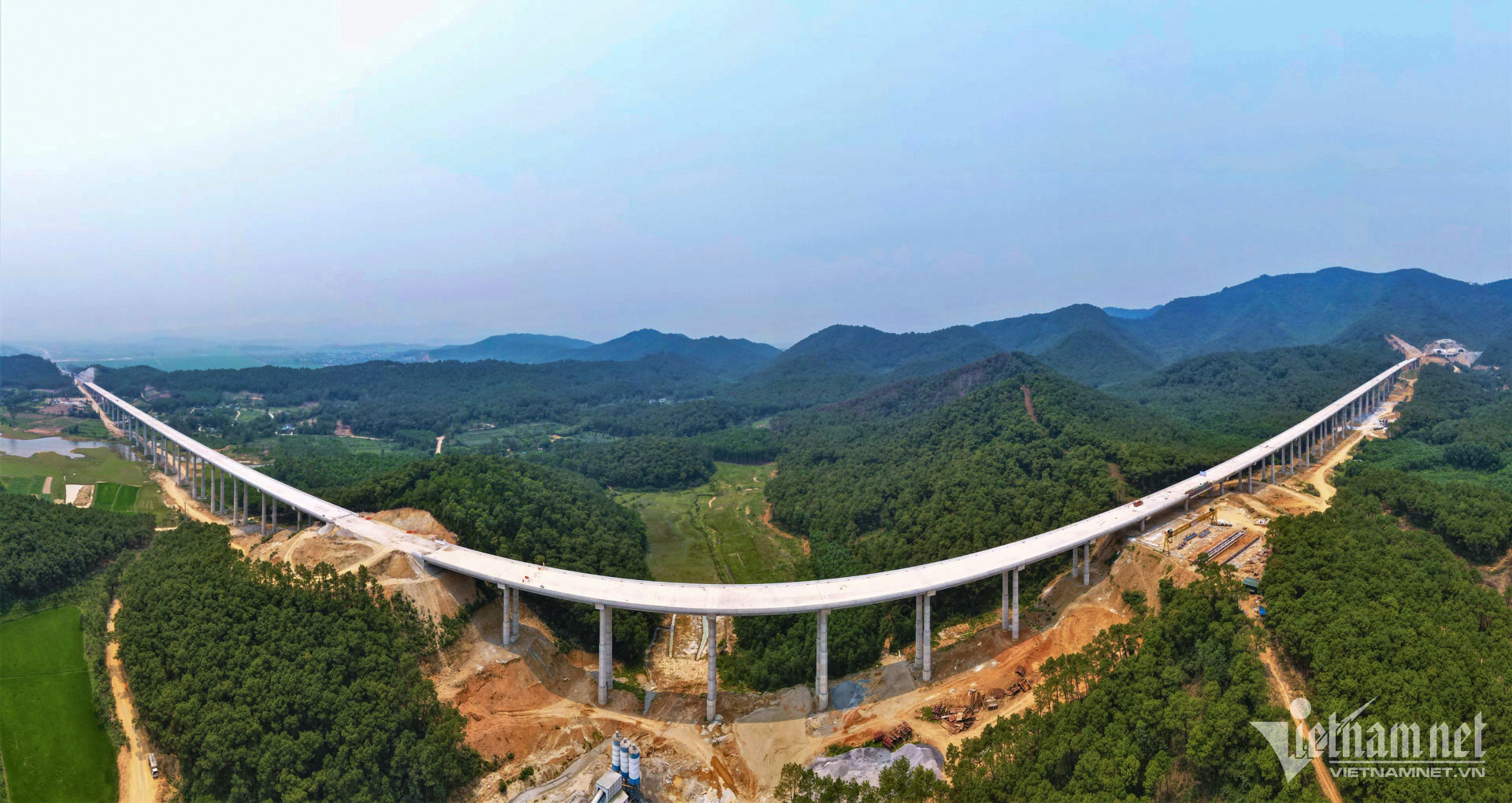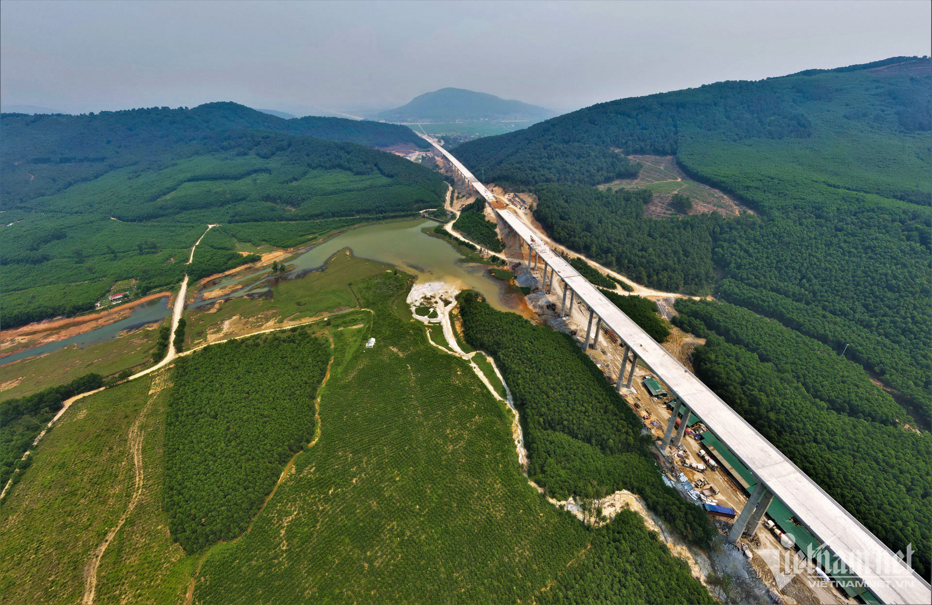 Do địa hình thi công cao tốc không bằng phẳng, 4 cây cầu cạn được xây dựng trên tuyến gồm cầu Xuân Dương 1, cầu Xuân Dương 2, qua hầm Thần Vũ đến cầu Thần Vũ 2 và cầu Ồ Ồ. Trong hình là cầu Xuân Dương 2 đã hợp long, nhà thầu đang hoàn thiện các hạng mục còn lại.