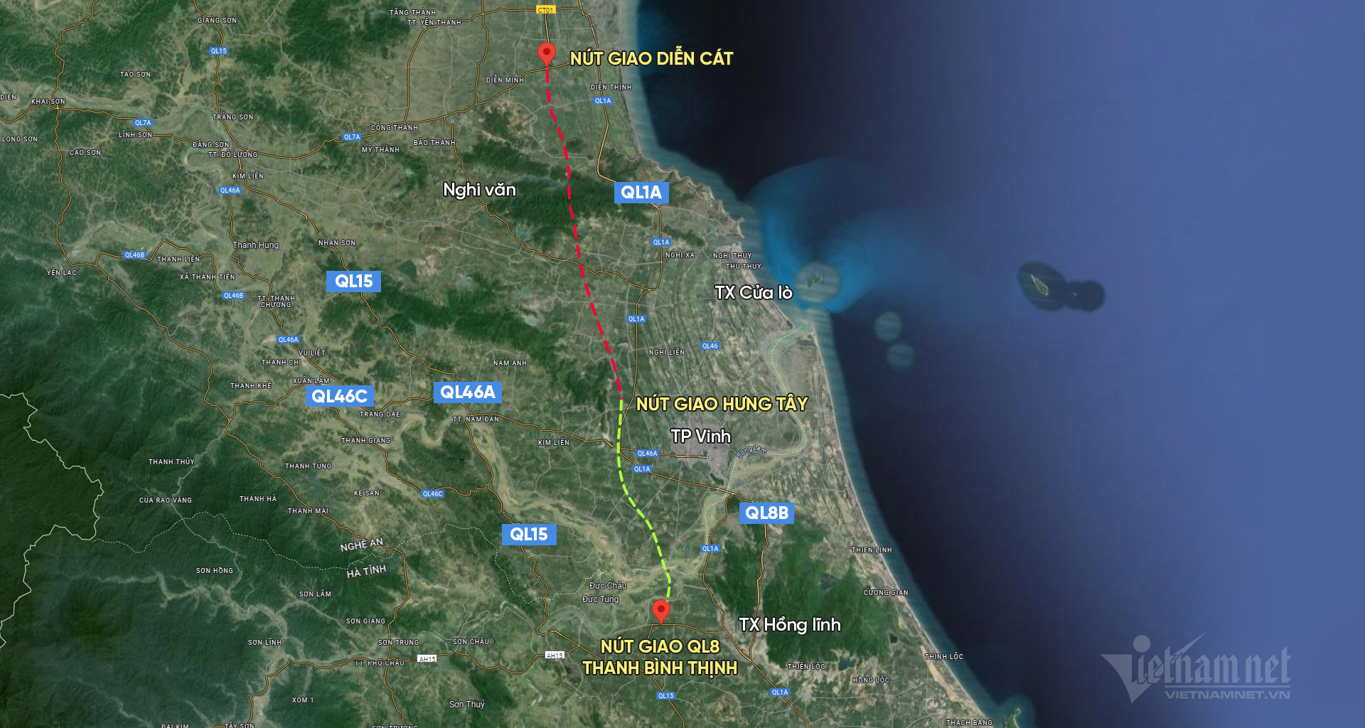 Theo chỉ đạo, đoạn từ đầu tuyến (nút giao QL7A, ở xã Diễn Cát, huyện Diễn Châu) đến nút giao QL46B (xã Hưng Tây, huyện Hưng Nguyên, tỉnh Nghệ An) dài 29km phải hoàn thành vào dịp 30/4. Đoạn còn lại 19km có nền đất yếu cần thời gian chờ gia tải nên sẽ hoàn thành sau.
