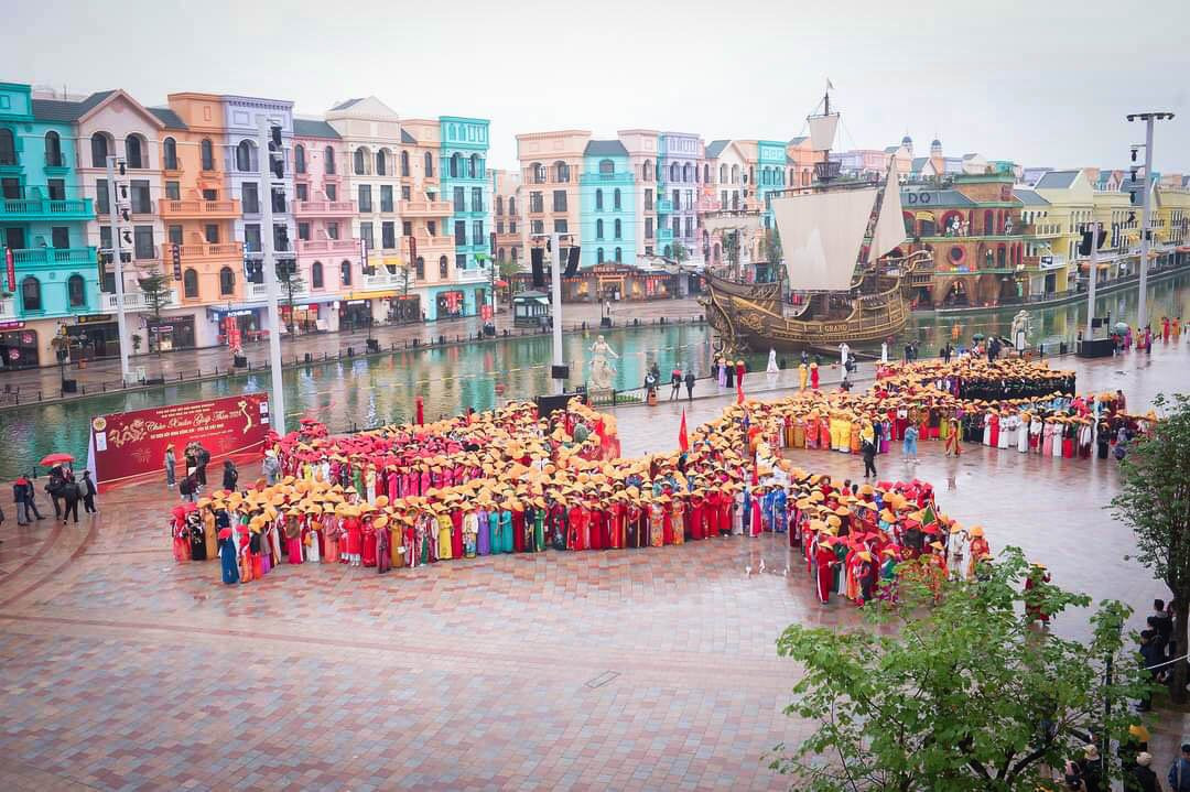 Cũng tại sự kiện, ngoài việc xếp hình biểu tượng Xuân Giáp Thìn, chị em phụ nữ còn trình diễn chiếc áo dài kỷ lục của NTK Hoàng Ly mang tên Dấu ấn thời gian. Bộ áo dài đã được Tổ chức Kỷ lục Việt Nam trao chứng nhận là chiếc áo kỷ lục với tà dài 189m, đính đá và in nổi 468 hoa văn họa tiết cổ.