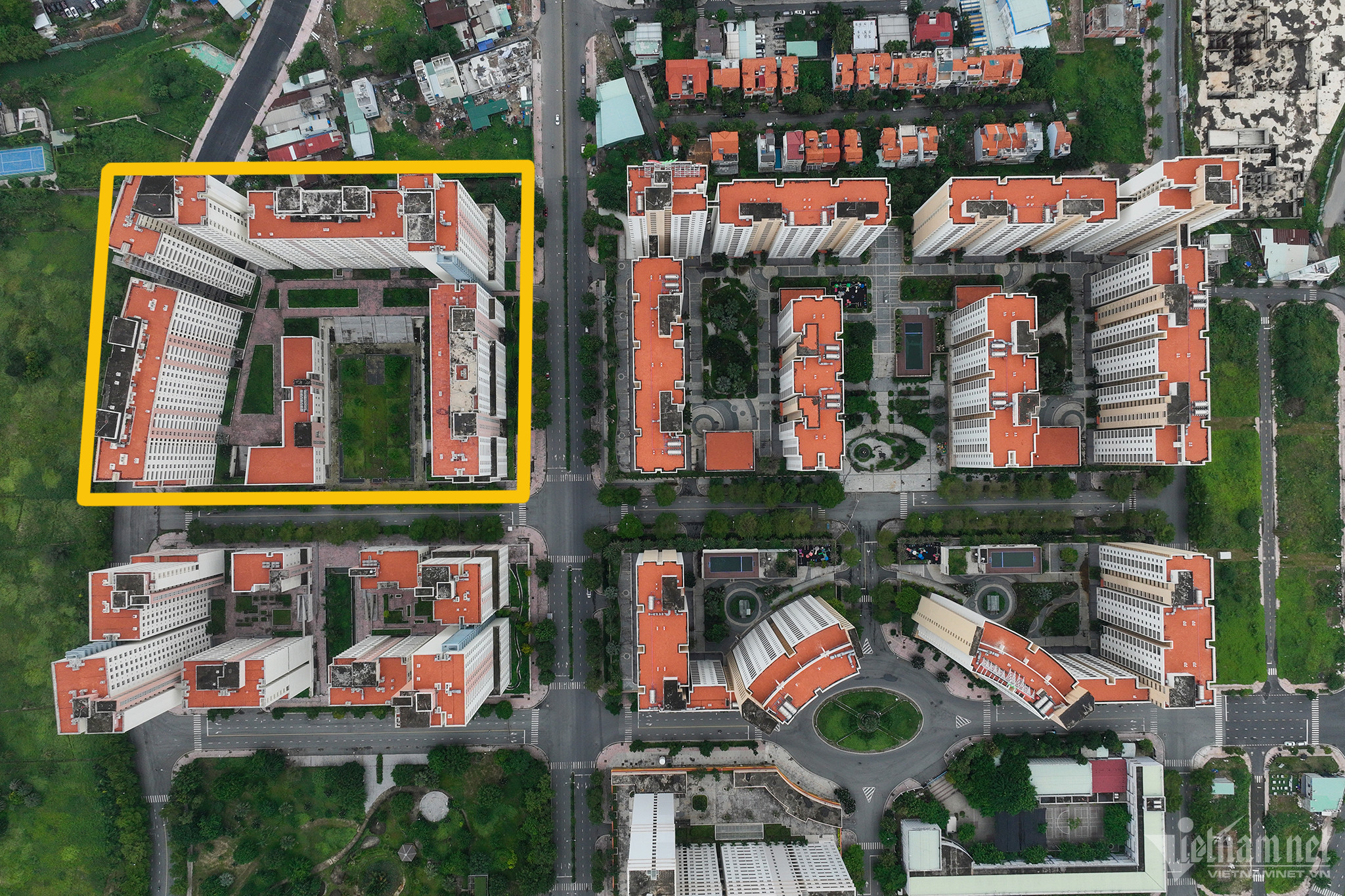 Kể từ khi dịch Covid-19 được kiểm soát, khu chung cư trở lại trạng thái bỏ trống, hiện có dấu hiệu xuống cấp.