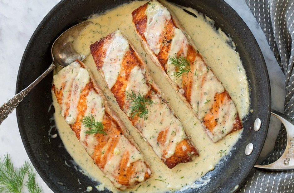 Cá hồi sốt kem mù tạt