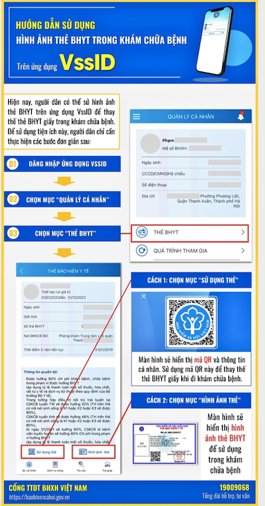Người tham gia BHYT khi đi khám chữa bệnh có thể sử dụng ứng dụng VssID-BHXH số, sử dụng tài khoản ứng dụng VNeID mức 2 và thẻ căn cước công dân (CCCD) gắn chip để thay cho BHYT giấy.