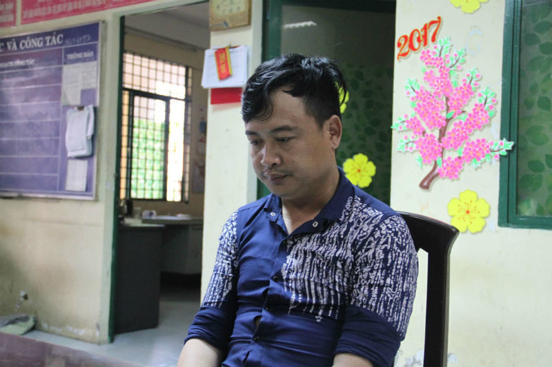 | Nghi can Lê Minh Quân tại cơ quan công an |