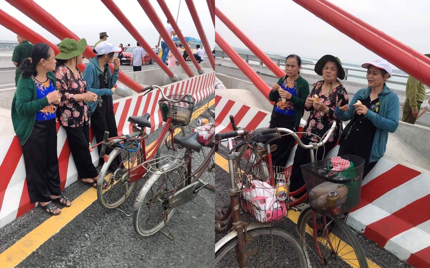 3 cụ bà "phượt" 60km bằng xe đạp để ngắm cây cầu dài nhất Bắc Trung Bộ thu hút nhiều sự chú ý. |