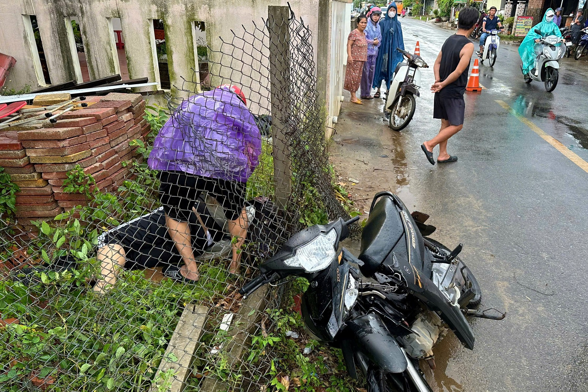 Khi đến đoạn đường trên, xe được cho là mất lái, lao sang phần đường ngược chiều rồi tông vào trụ bờ rào lưới B40 của một nhà dân ven đường.