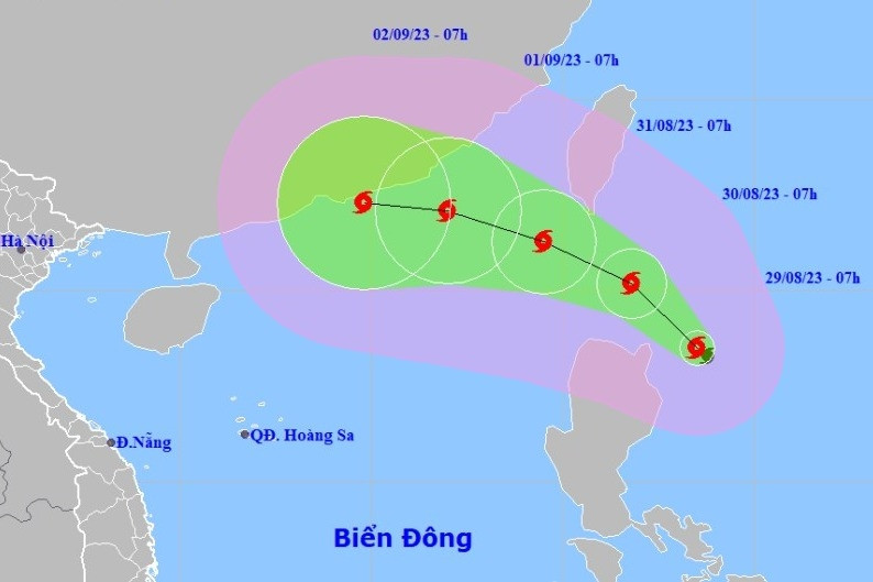 Từ 31/8, cảnh báo ở khu vực phía Bắc của Biển Đông có mưa bão, gió mạnh cấp 9-10, sau tăng lên cấp 11-12, vùng gần tâm bão cấp 14-15, giật trên cấp 17. Sóng biển cao 4-6m, vùng gần tâm bão sóng cao từ 6-8m.
