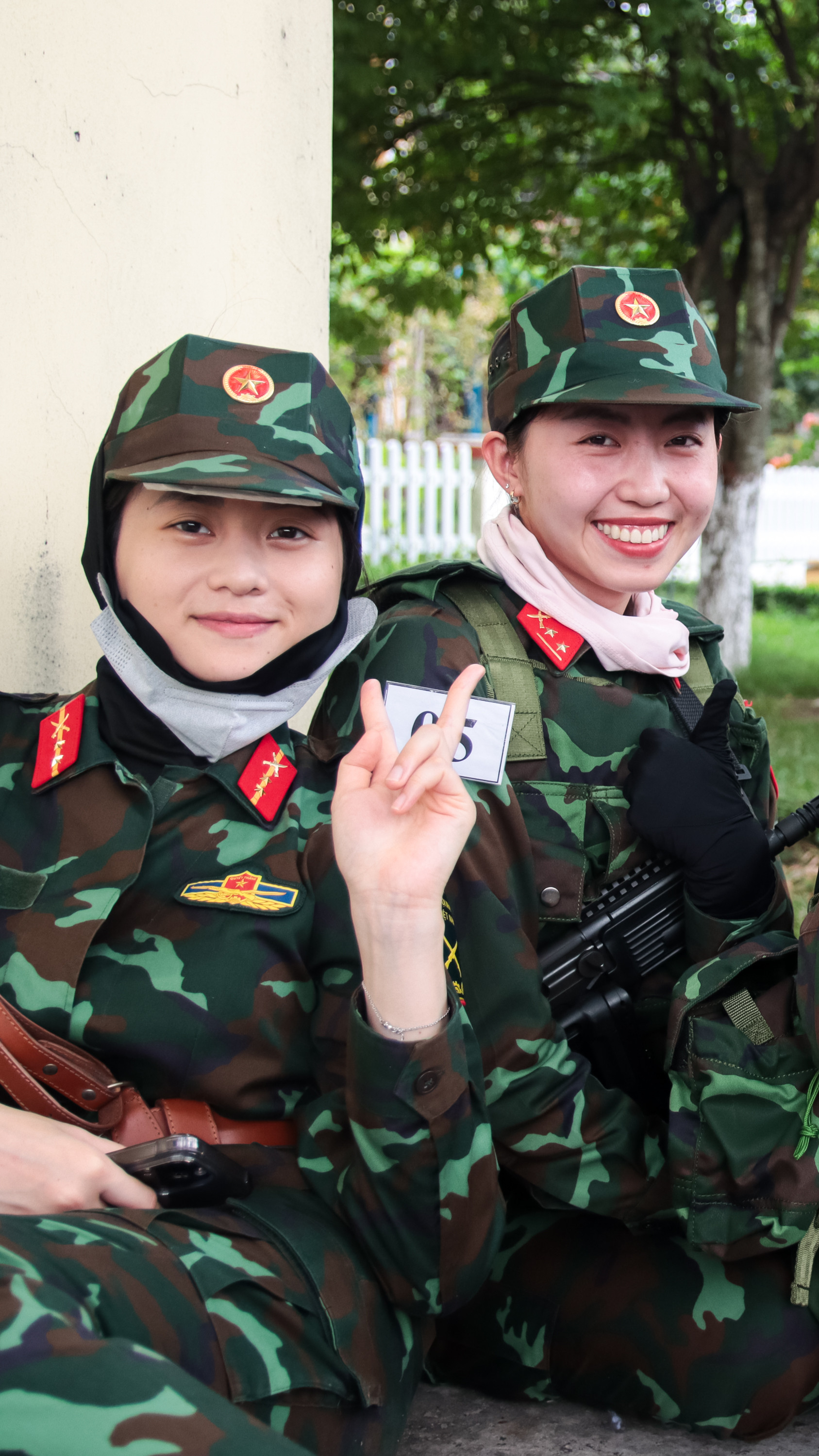 "Ngoài giờ luyện tập, mình rất thích được cùng các chị em coi phim lịch sử, xem ca nhạc, hoạt động ngoại khóa với sinh viên của các trường về học quân sự", Nhi kể.