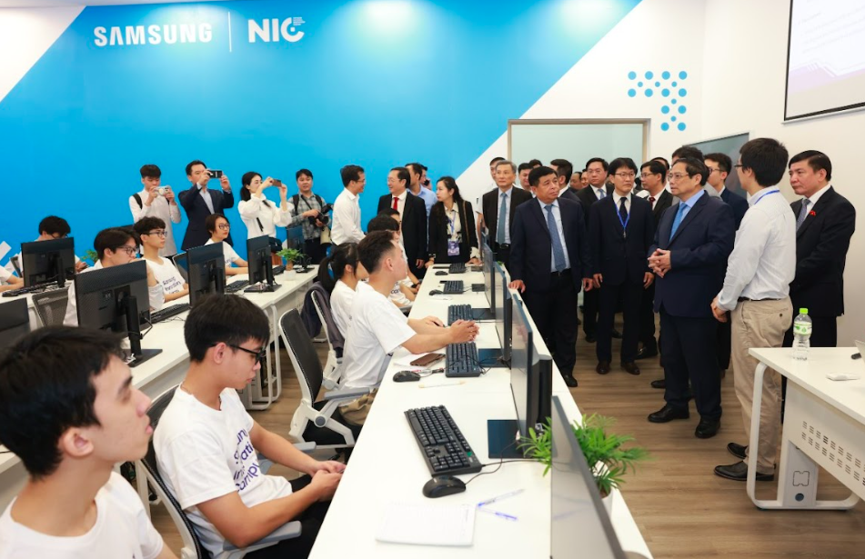 Thủ tướng chính phủ Phạm Minh Chính cùng các đại biểu đã trực tiếp tham quan và thực hiện nghi lễ khai trương phòng Lab của Samsung tại NIC Hòa Lạc.