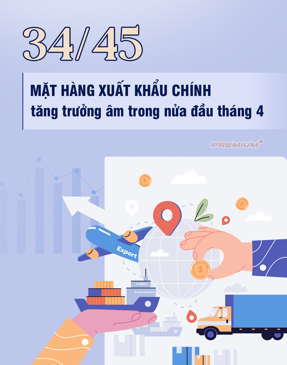 Theo số liệu công bố sáng 19/4 từ Tổng cục Hải quan, trong nửa đầu tháng 4, có tới 34/45 mặt hàng xuất khẩu chính ghi nhận tăng trưởng âm.