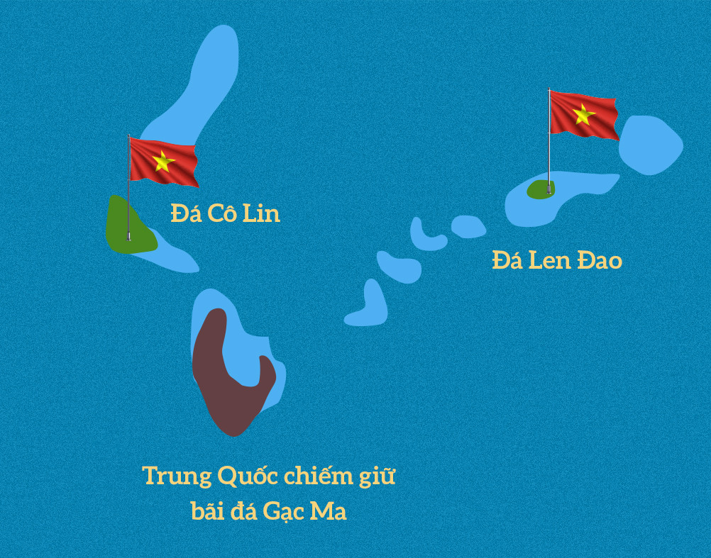 Ngày 12/3/1988, tàu vận tải HQ-605 của Hải quân Việt Nam từ Đá Đông di chuyển đến để đóng giữ bãi Len Đao; 5h sáng 14/3 đến nơi và đổ quân, cắm cờ Việt Nam lên Len Đao.