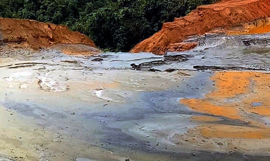 | Việc vây chắn tạm bợ không ngăn được lượng lớn lưu huỳnh tràn ra môi trường |