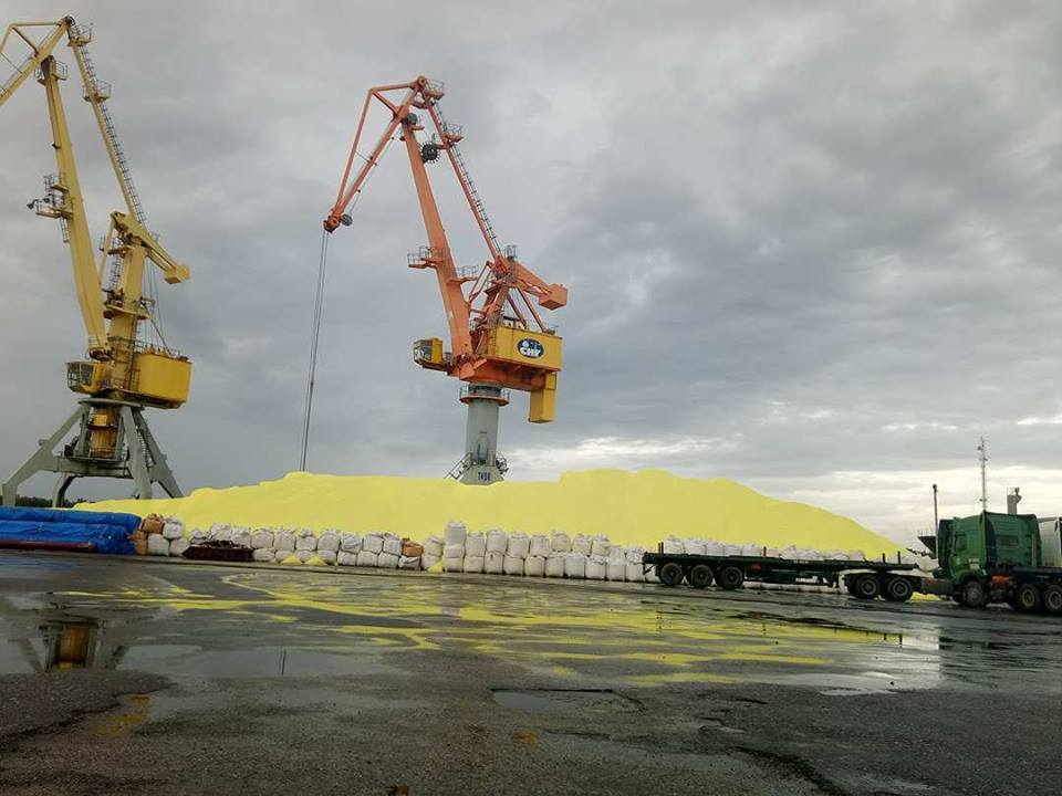 Một số hình ảnh về 4 vạn tấn lưu huỳnh lộ thiên tại cảng Hải Phòng:
