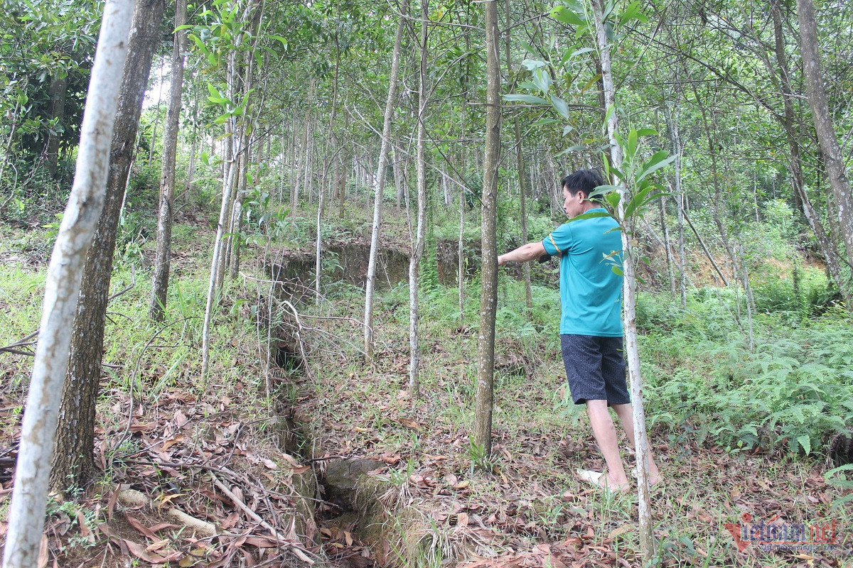 Ông Trần Mạnh Hà, tổ trưởng tổ dân phố 8 cho biết: “Vết nứt không chạy dài mà chia ra từng khu vực dọc theo triền núi Cây Sường. Đất sụt lún, sạt trượt từng mảng rất lớn, càng ngày khối đất khổng lồ càng gần nhà của 40 hộ dân, có nguy cơ đổ ào xuống vùi lấp nếu mưa lớn kéo dài khiến nền đất yếu”.