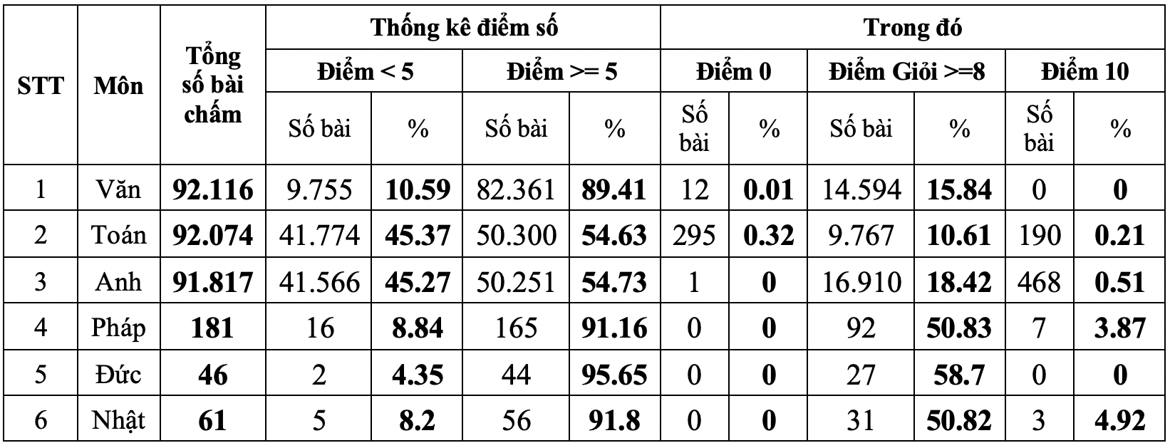 Môn Toán có đề thi có tính phân loại cao. Cấu trúc đề ổn định như những năm trước. Đáp án chi tiết, rõ ràng, dễ phổ biến và thống nhất. Phổ điểm ở mức ổn định như mọi năm.