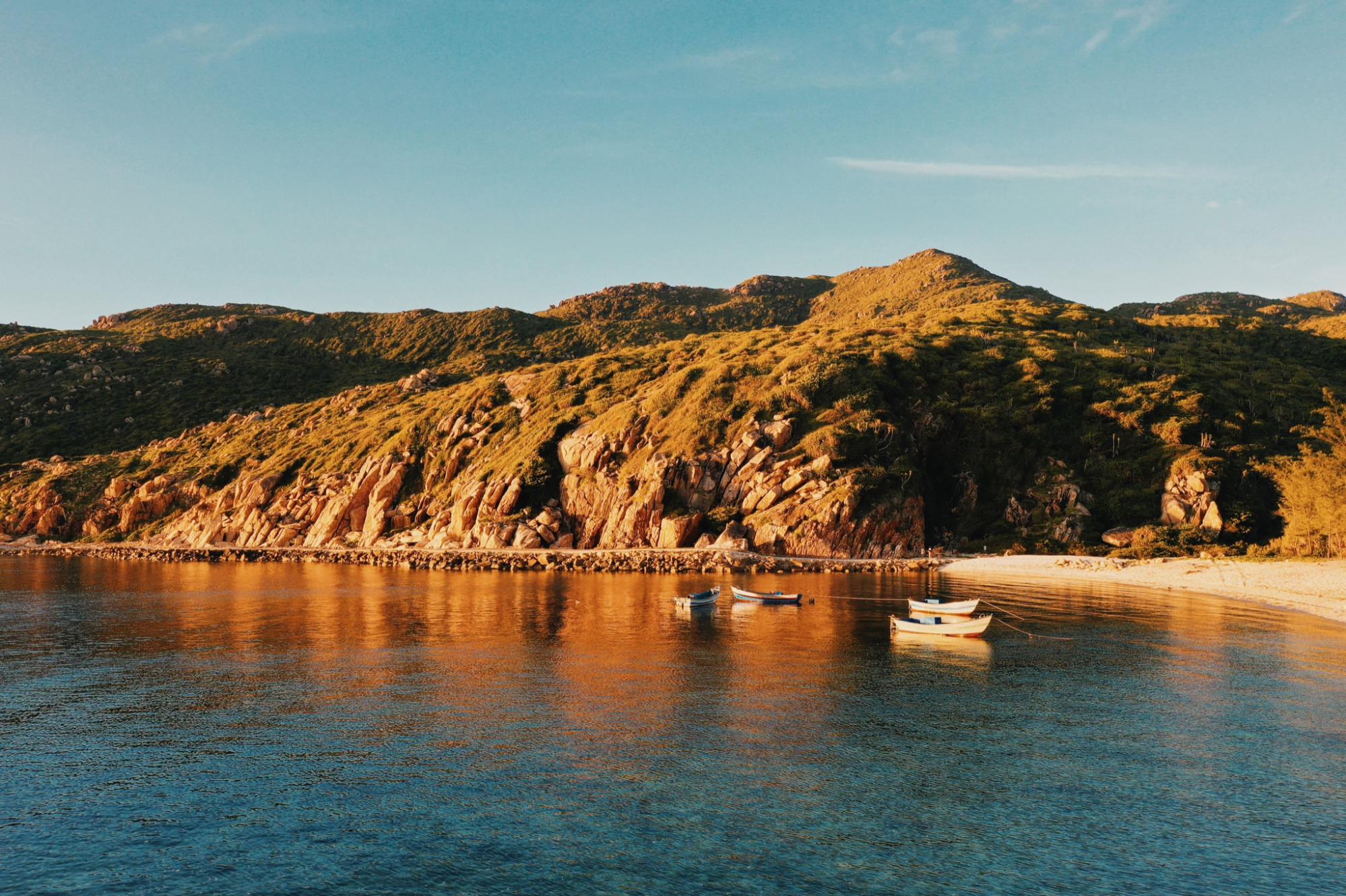 Địa điểm này nằm cách trung tâm Vĩnh Hy khoảng 15 phút chạy cano, sở hữu vẻ đẹp hoang sơ với bãi cát trắng, vách đá gập ghềnh, nước biển màu ngọc bích. Nơi đây không có người sinh sống, không có điện, không có sóng điện thoại hay wifi.