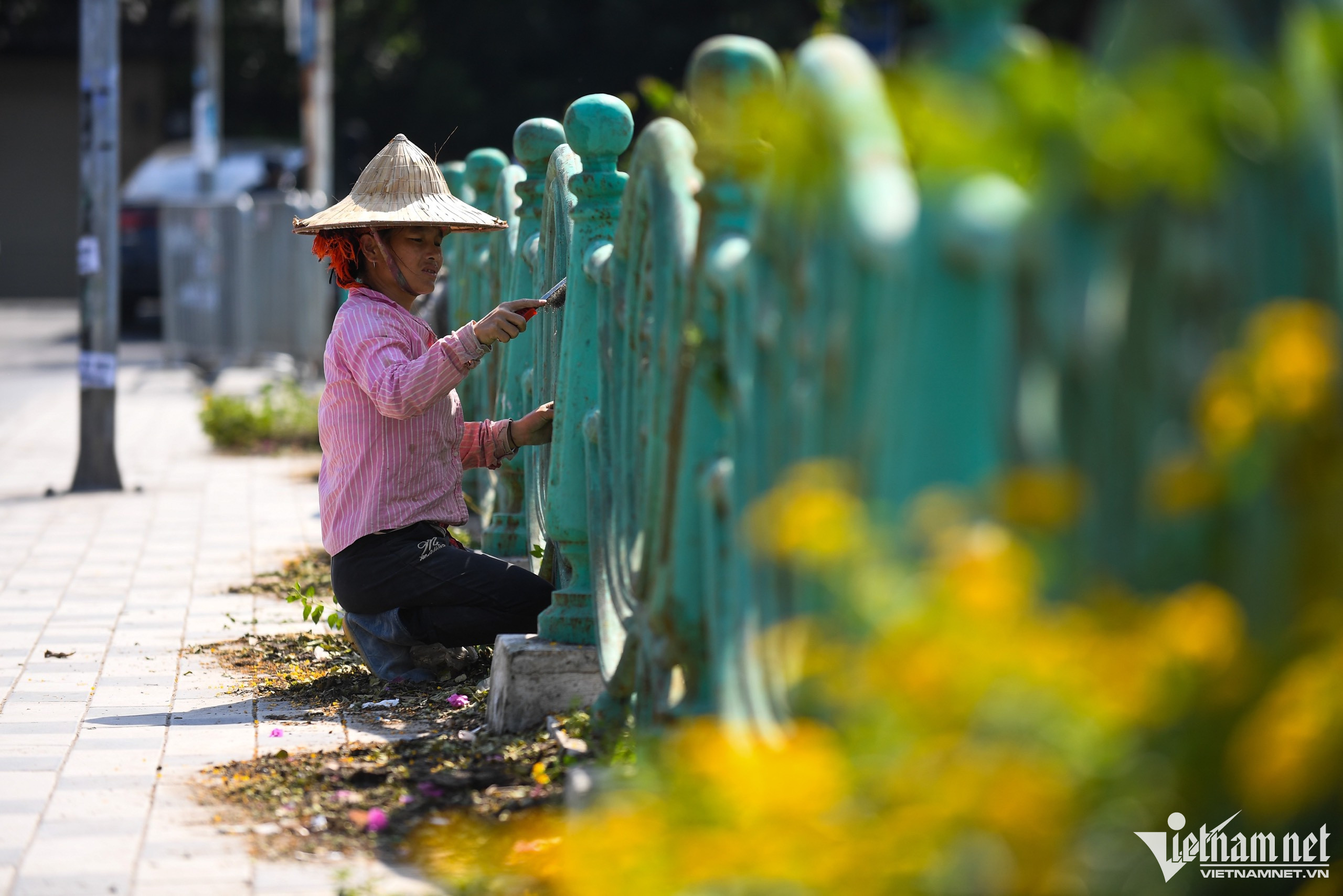 Sáng 15/10, trước khi di dời và tháo dỡ, nơi đây xuất hiện những người làm công việc phát quang cỏ dại khu vực ven hồ.