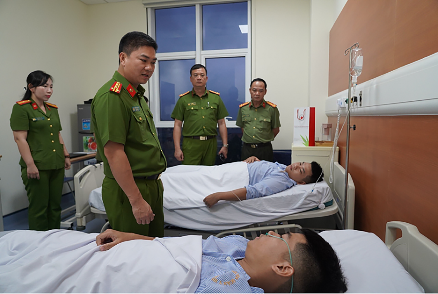 Vị lãnh đạo dặn dò 5 cán bộ công an an tâm điều trị, mau chóng hồi phục sức khỏe để sớm trở lại công tác, phục vụ nhân dân.