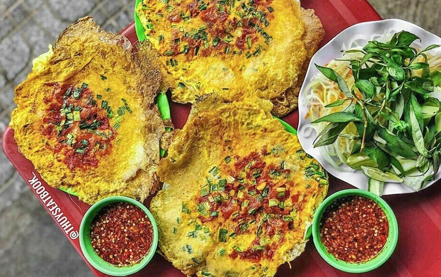 Món bánh này được thưởng thức cùng với nước mắm chua ngọt cực kì đưa miệng.