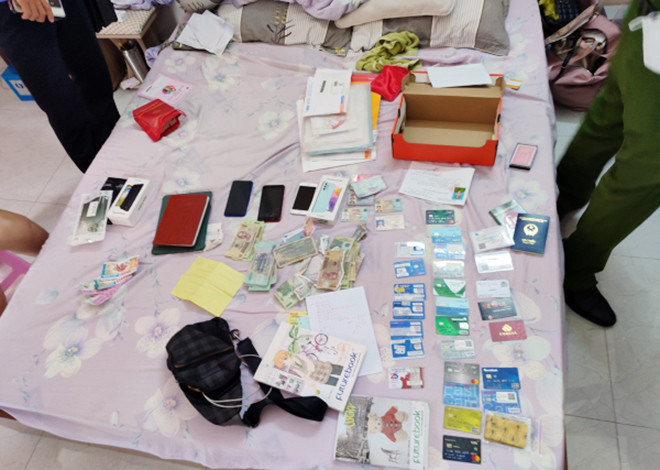 Cơ quan công an thu giữ 47 triệu đồng tiền mặt, 18 điện thoại di động cùng nhiều sim số điện thoại, 49 tài khoản ngân hàng…