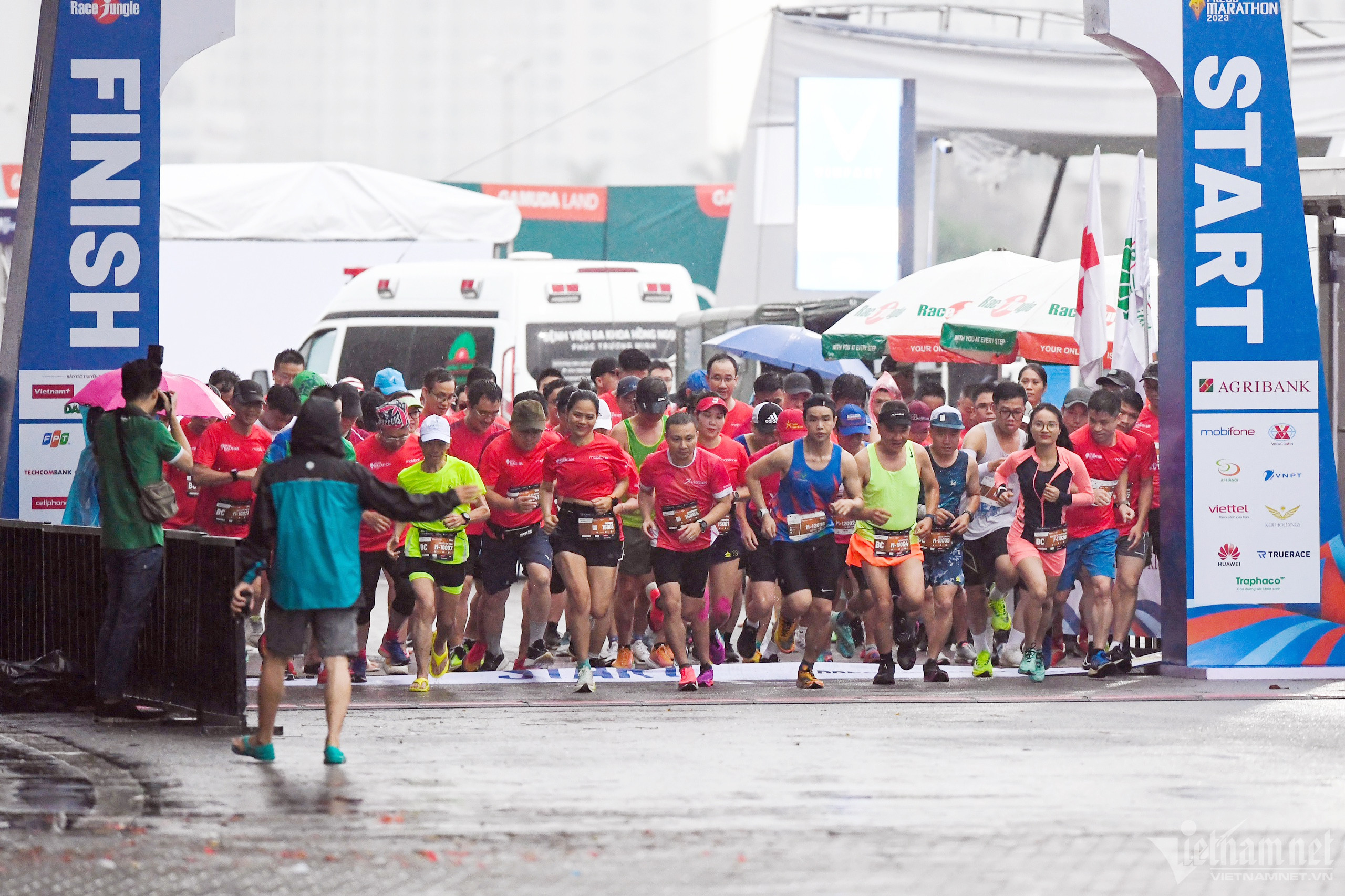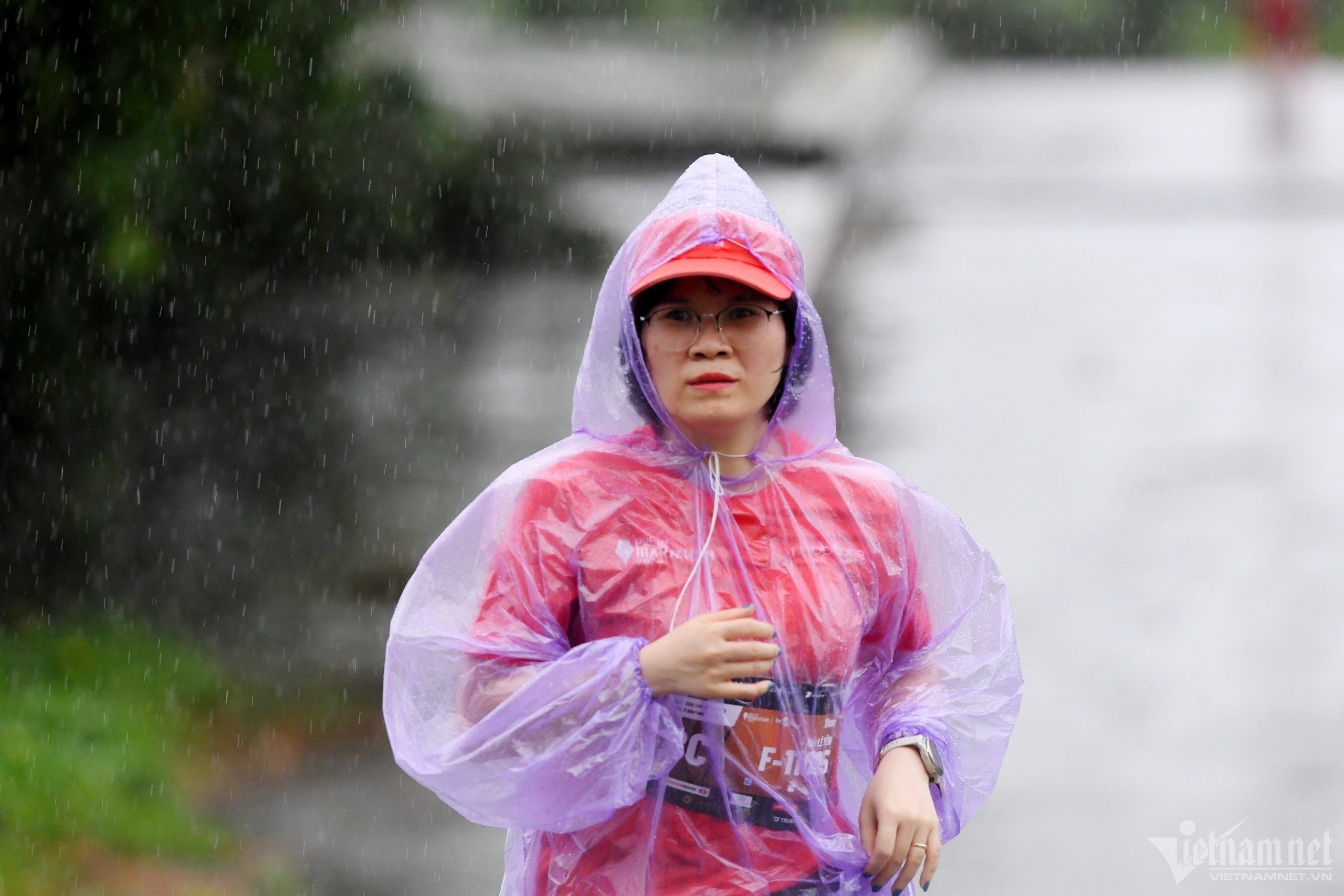 Ngay từ 4h sáng, trời mưa nặng hạt, nhiều "vận động viên" vẫn cố gắng hoàn thành quãng đường với 3 nội dung ở các cự ly 5km, 10km và 21,6km.