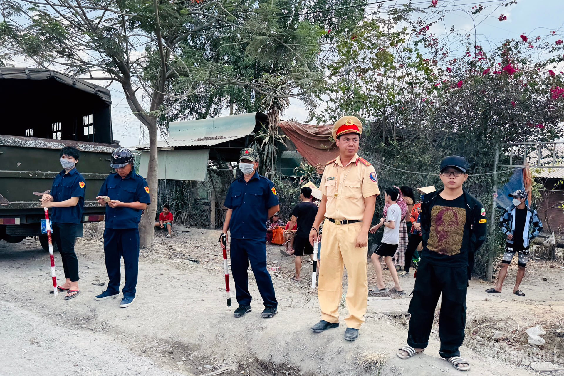 Gần 11h, nhiều người hiếu kỳ tập trung theo dõi sự việc mỗi lúc một đông hơn. Quanh hiện trường, nơi xảy ra vụ nổ bị phong tỏa. Cảnh sát xuất hiện dày đặc, các lối vào được chốt chặn nhằm siết chặt an ninh trật tự.