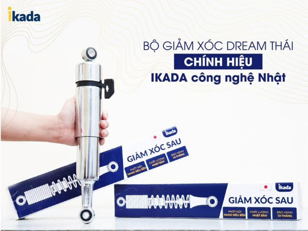 Giảm xóc thương hiệu Ikada được sản xuất theo công nghệ Nhật Bản trên dây chuyền hiện đại, với chất lượng đảm bảo, mang đến trải nghiệm êm ái cho người điều khiển xe.