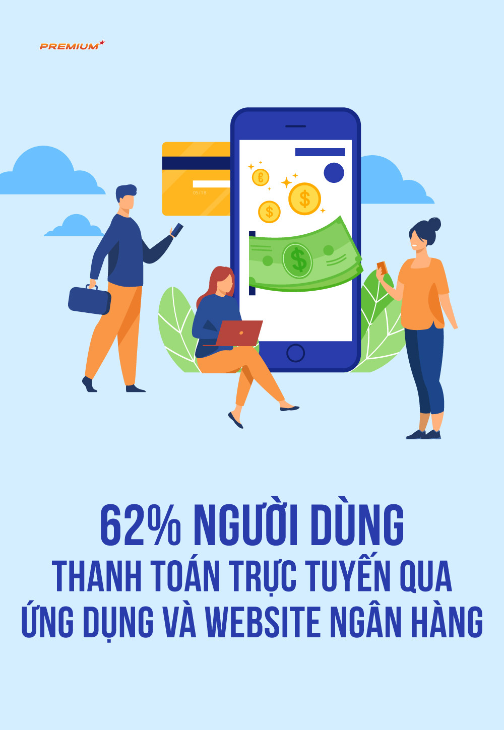 Một khảo sát về thanh toán không tiền mặt cho thấy 62% số người trả lời cho biết dùng ứng dụng và website ngân hàng, 48% qua ví điện tử/nền tảng thanh toán trực tuyến và 38% bằng thẻ ngân hàng.