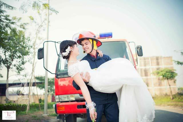 Phía sau bộ ảnh cưới gây sốt trong trang phục lính cứu hỏa là một tình yêu đẹp dài 7 năm của cặp đôi Đình Mẫn – Nguyễn An.