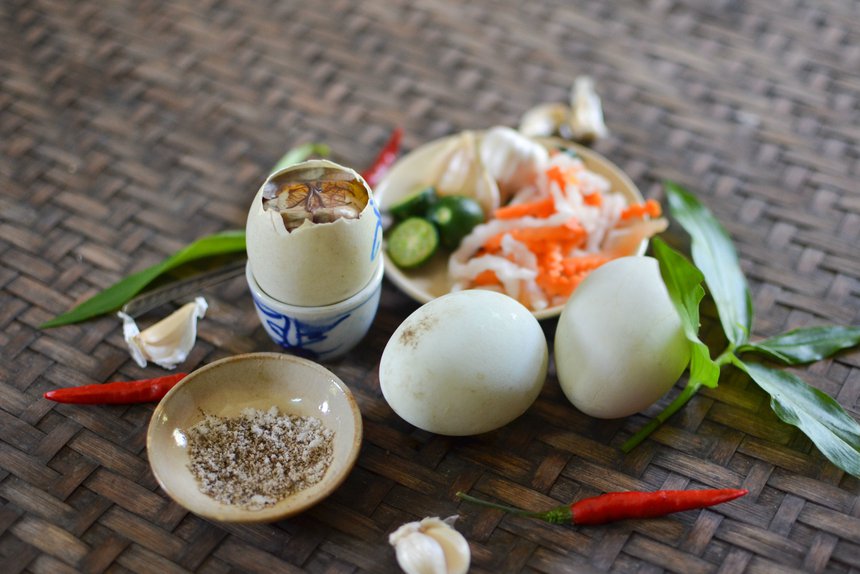 Trứng vịt lộn: Được bán như thức ăn đường phố dọc theo lề đường và tại các quầy hàng trong chợ, trứng vịt lộn là món ăn dân dã quen thuộc của người dân Việt Nam và cũng nổi tiếng với du khách đến Philippines, nơi món ăn được gọi là balut. Tuy nhiên, món ăn vặt giàu protein này mang đến cảm giác e dè cho không ít du khách và không phải ai cũng dám ăn thử. Ảnh: Phnom Penh Life. |