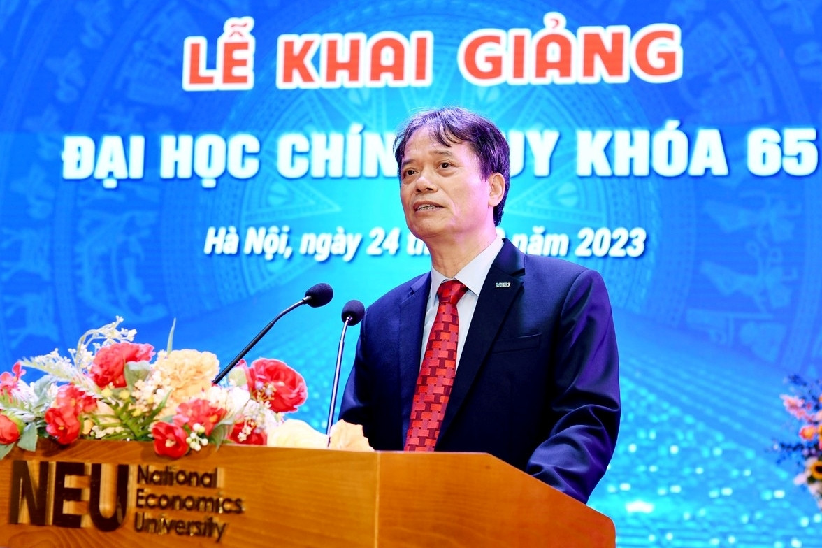 Phát biểu tại buổi lễ, PGS. TS Bùi Anh Tuấn, Hiệu trưởng Trường ĐH Ngoại thương chia sẻ với các tân sinh viên: “Dù các em đang mang trong mình sự hào hứng hay lo lắng, hãy đón nhận hành trình này với niềm hân hoan và hứng khởi, với tinh thần sẵn sàng trải nghiệm. Các em hãy mạnh dạn đón nhận thử thách như một điều tất yếu của cuộc sống. Hãy chấp nhận và dấn thân vào những điều các em lo sợ nhưng vẫn muốn thử. Chúng ta không thể kiểm soát được tất cả những khó khăn, thử thách sẽ xảy đến. Thứ duy nhất chúng ta có thể kiểm soát là thái độ đối với khó khăn và thử thách đó. Có người coi khó khăn là kẻ thù, nhưng có người lại coi khó khăn là người thầy với những bài học lớn”.