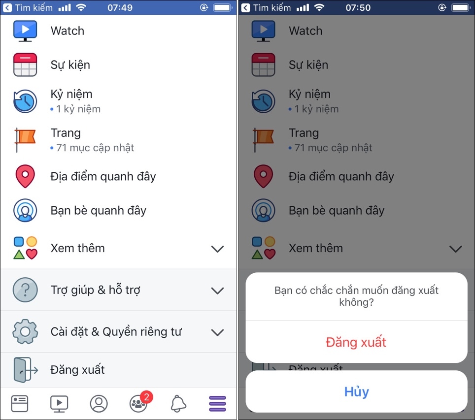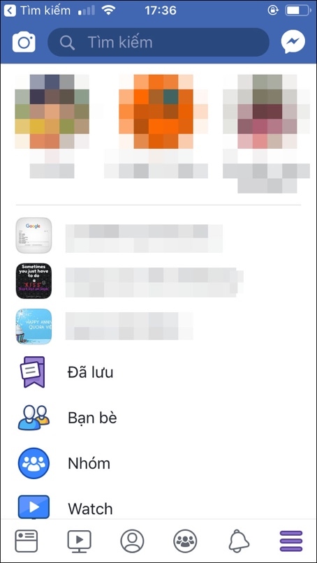 Từ ứng dụng Facebook, bạn bấm nút trình đơn (hình ba thanh ngang) ở dưới cùng góc phải.