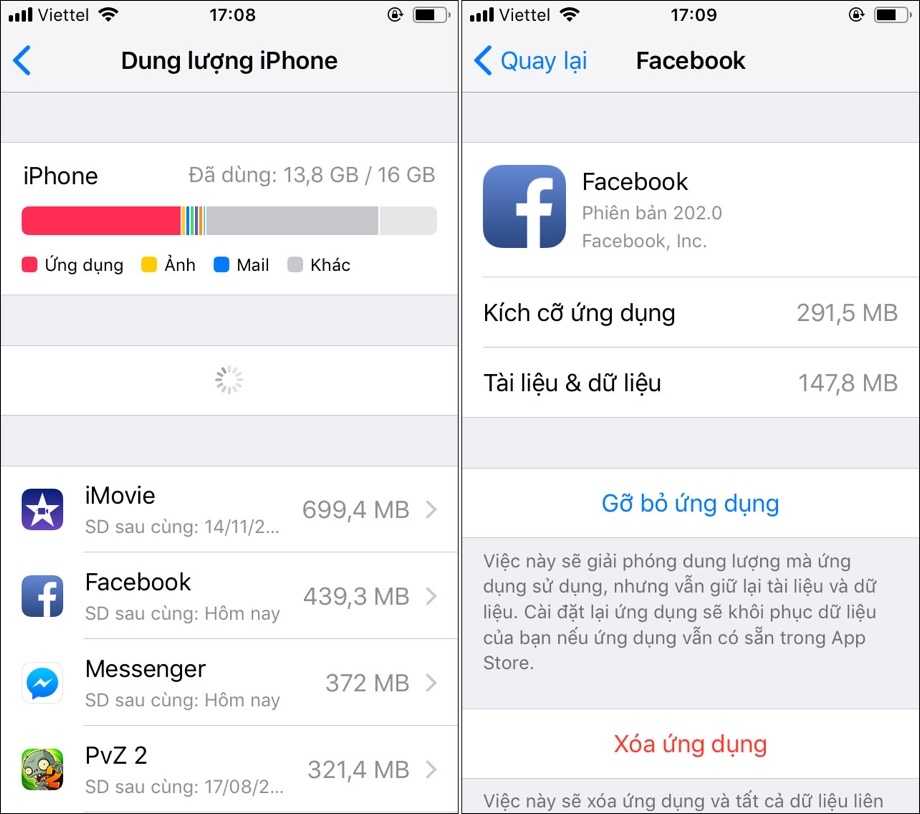 Giải phóng không gian do ứng dụng Facebook chiếm dụng